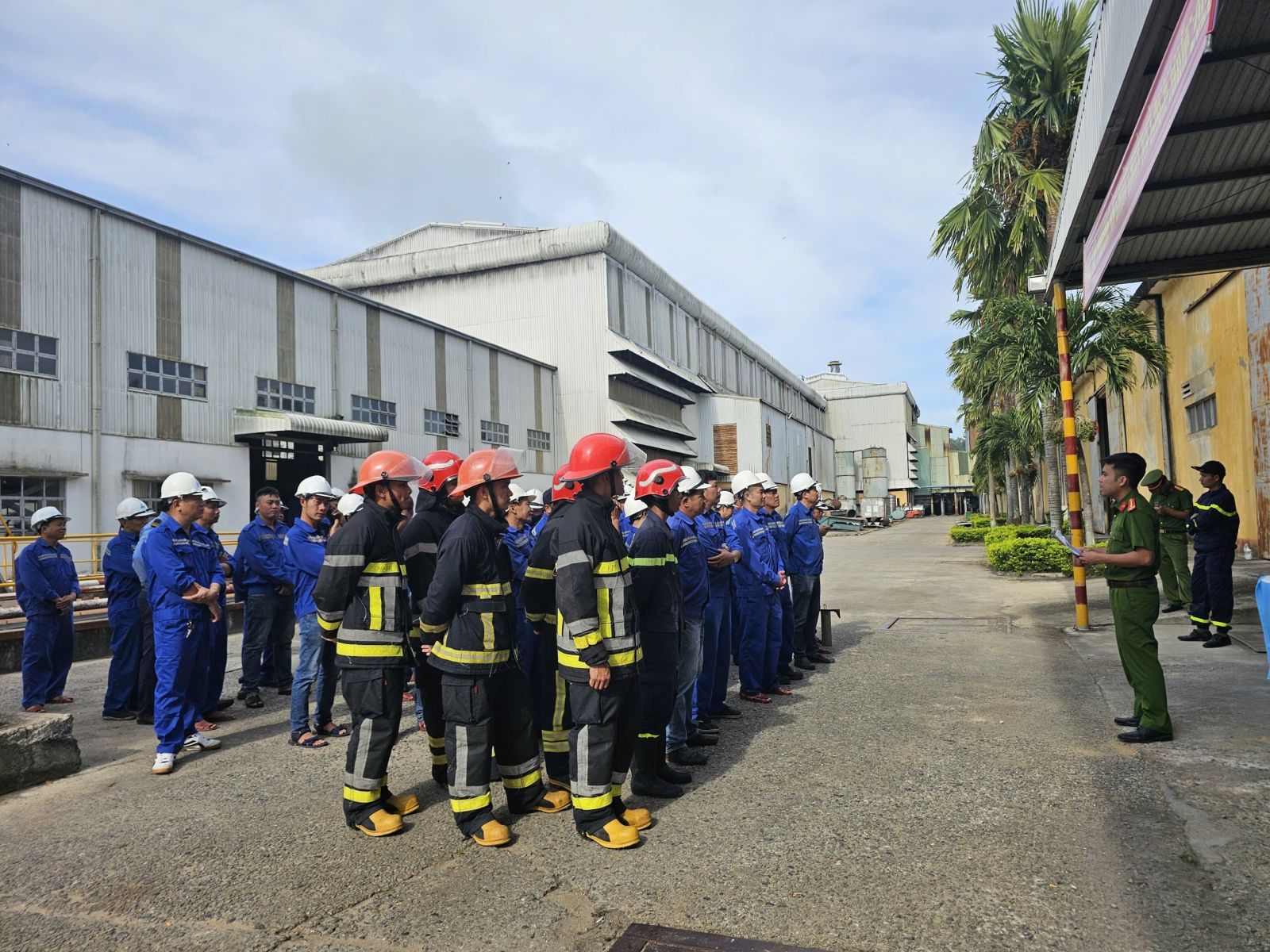 Theo tình huống giả định: Vào lúc 09 giờ 15 phút ngày 04/10/2025, xảy ra sự cố cháy tại khu vực thuộc hệ thống máy móc thiết bị trong dây chuyền đường tinh luyện đường RE (dây chuyền ép mía công suất 18.000 tấn mía/ngày, trước khu vực kho vật tư của Nhà máy địa chỉ: Phường An Khê, tỉnh Gia Lai). Đám cháy được xác định phát sinh tại khu vực máy trong dây chuyền sản xuất, tiềm ẩn nguy cơ lan rộng và gây thiệt hại lớn.