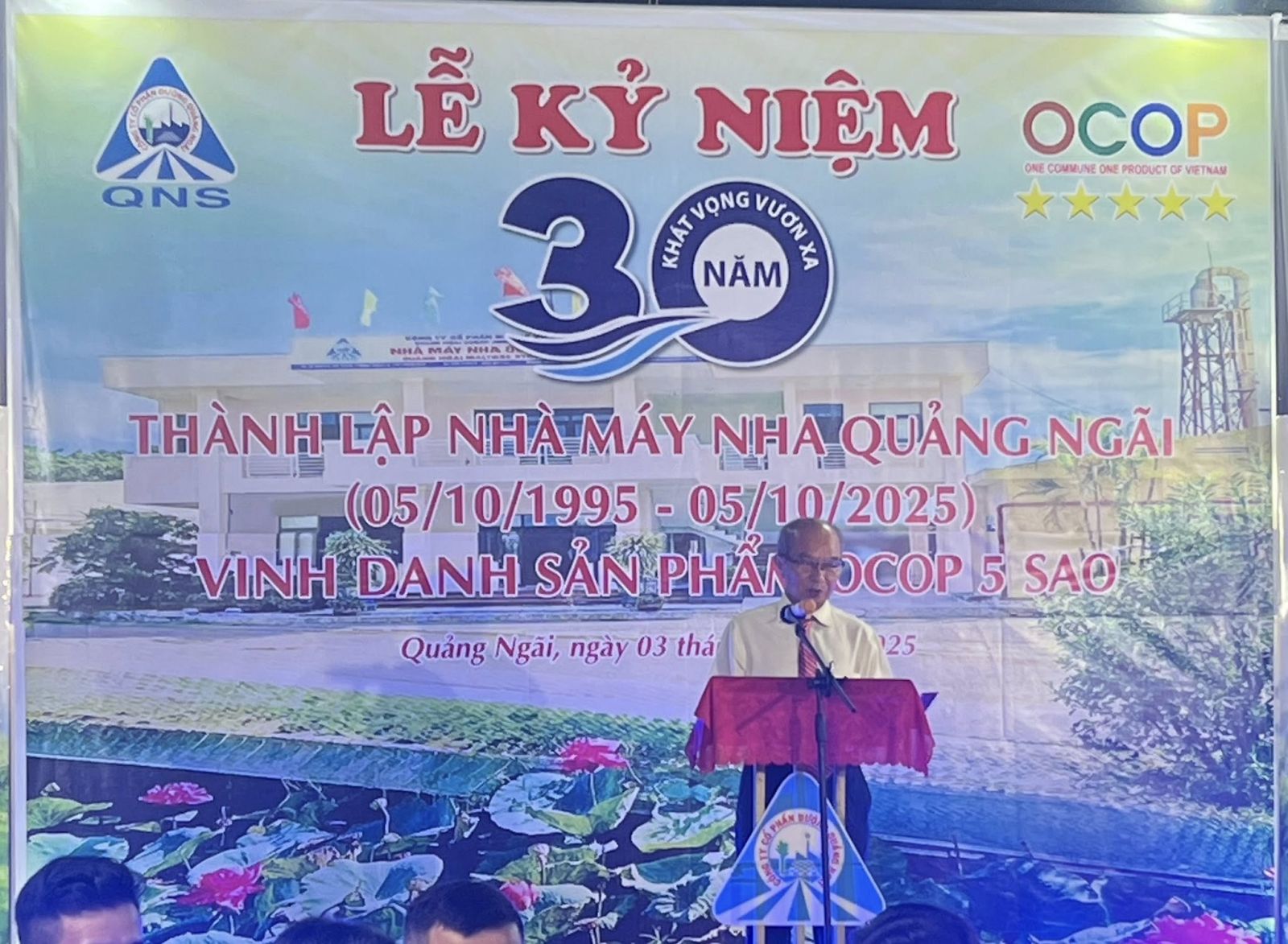 Chiều ngày 03/10/2025, Nhà máy Nha Quảng Ngãi – đơn vị thành viên thuộc Công ty Cổ phần Đường Quảng Ngãi (QNS) – đã long trọng tổ chức Lễ kỷ niệm 30 năm thành lập (05/10/1995 – 05/10/2025) và vinh danh Sản phẩm OCOP 5 sao cấp Trung ương.
