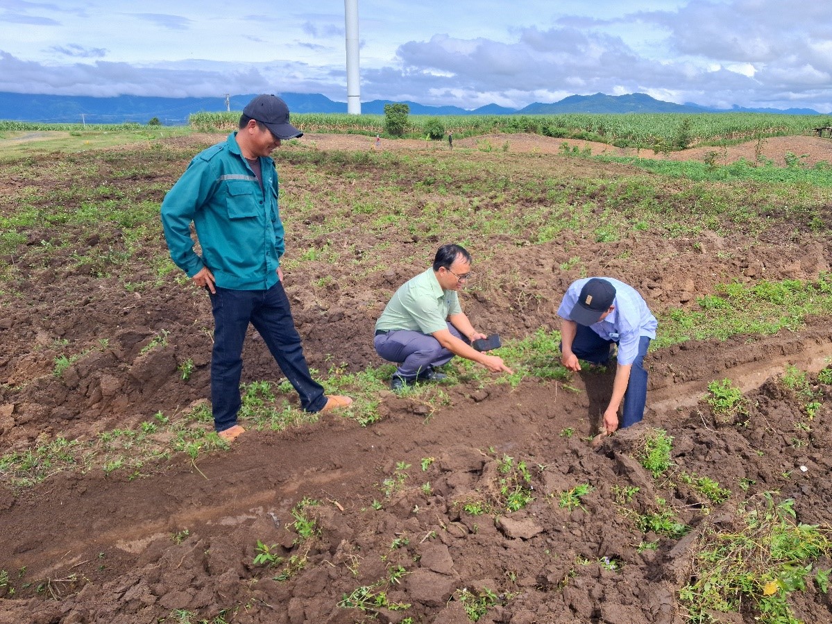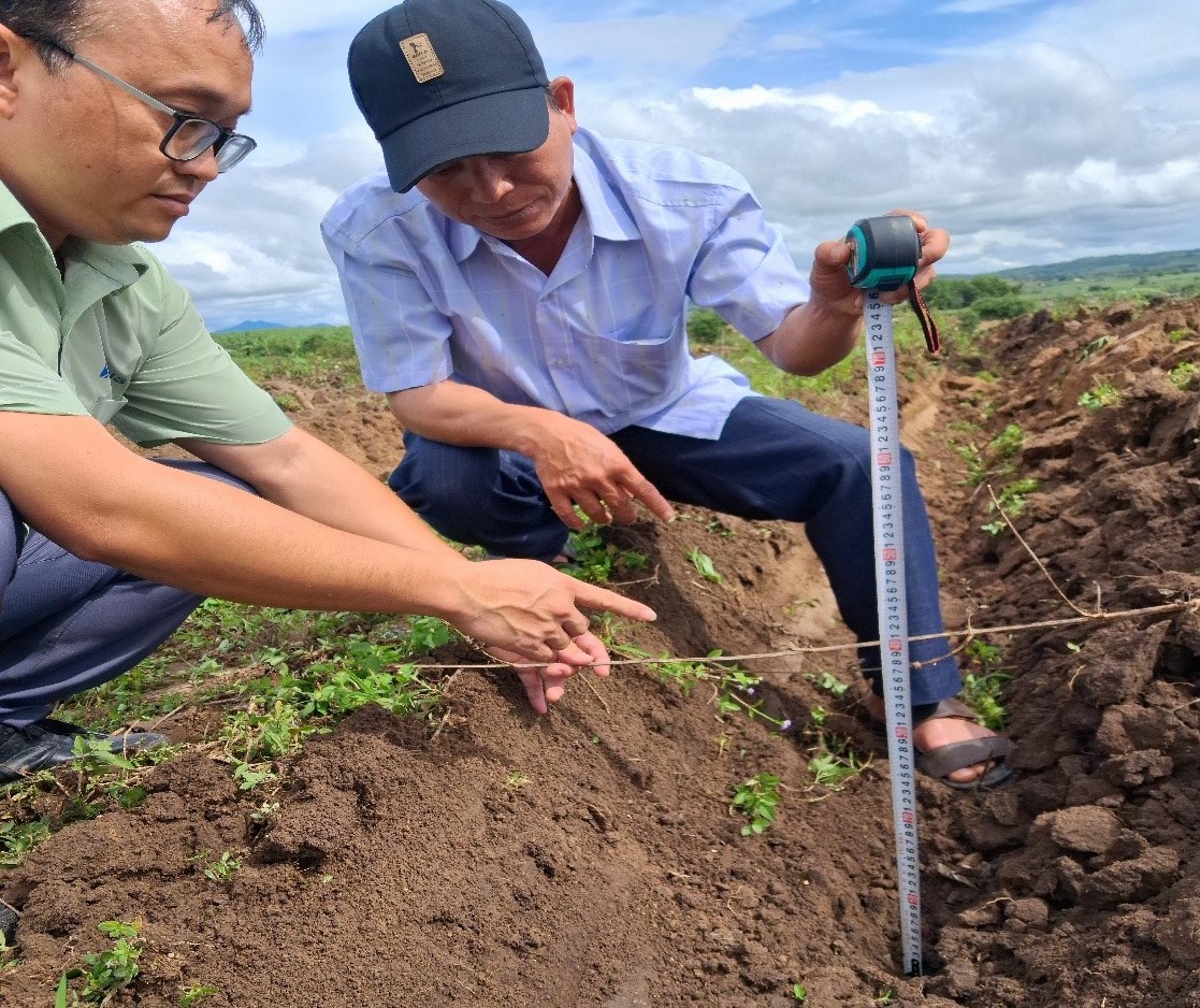 Ảnh: Bộ phận kỹ thuật đang kiểm tra độ sâu của đường cày trong ngày ra quân